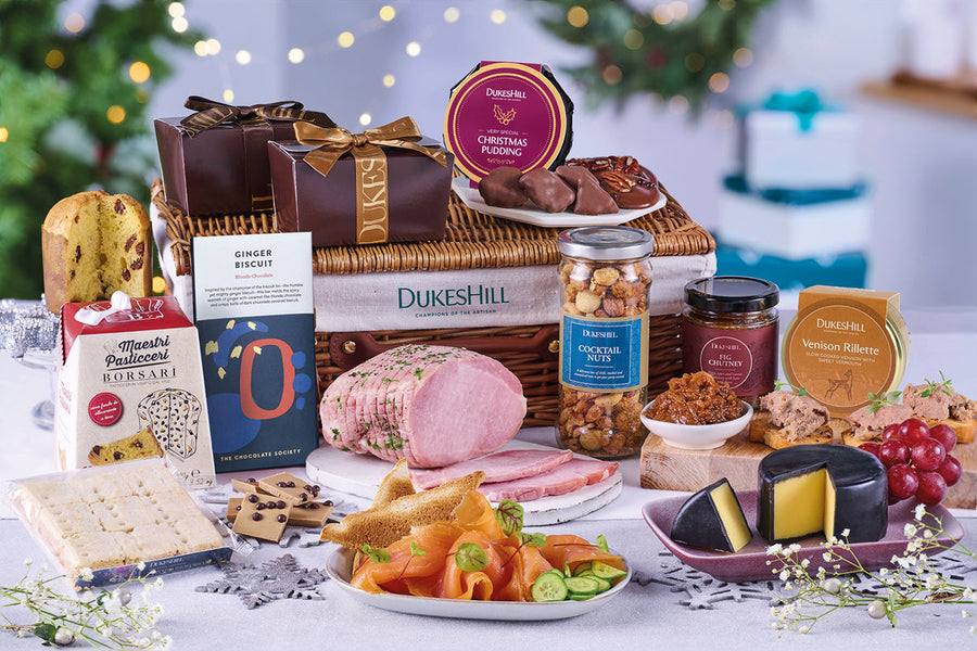 Our luxury Christmas food hampers are the perfect way to treat family, friends, or even yourself this festive season. Packed with a sumptuous selection of gourmet foods, from artisanal cheeses, whole turkeys and traditional hams to indulgent chocolates and festive preserves, these hampers make ideal gifts or serve as a delicious addition to your Christmas Day spread. Whether you're looking to impress loved ones or cater for a large family gathering, our beautifully presented hampers offer the finest in seasonal indulgence. Explore the range and elevate your Christmas feast today!