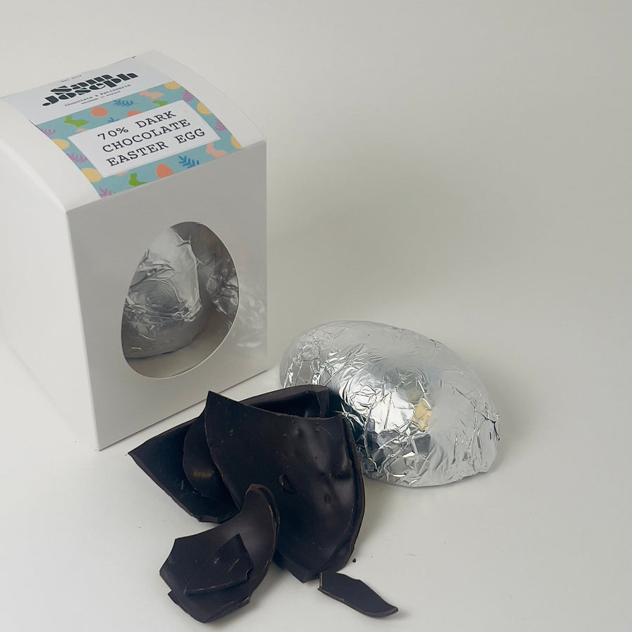 A smooth and utterly delicious handmade Easter Egg from Altrincham-based Sam Joseph Chocolate, made with ultra rich 70% dark chocolate.