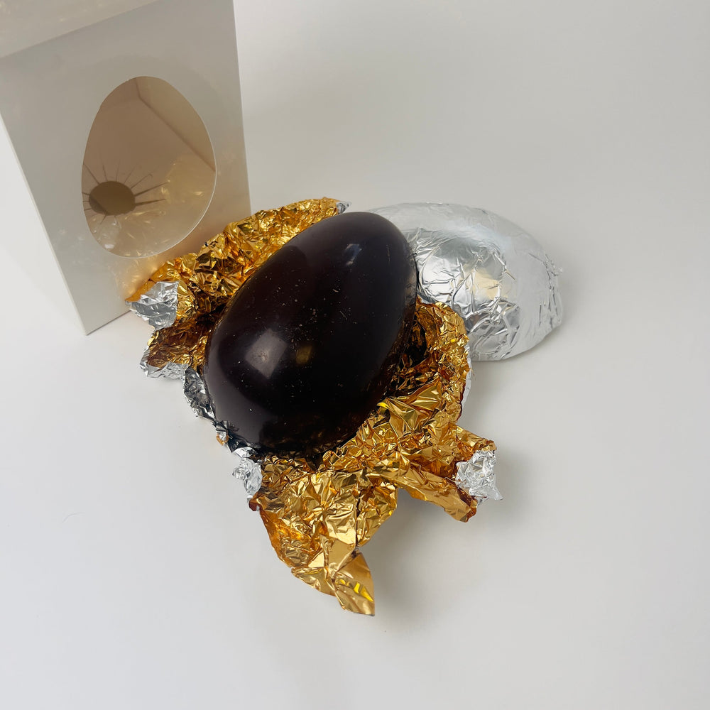 Available as an egg only, or with 4 luxury handmade plant-based chocolates including: