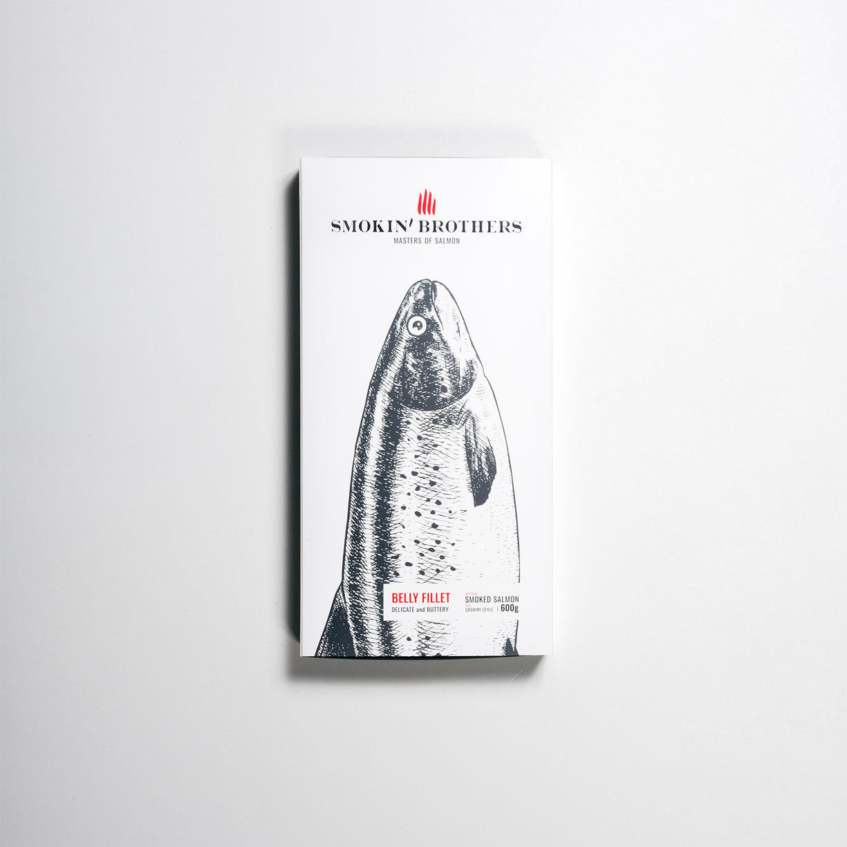 An unashamedly buttery cut of smoked salmon from Smokin' Bros, with a delicate smokiness that enhances the natural sweetness of this salmon belly fillet.
