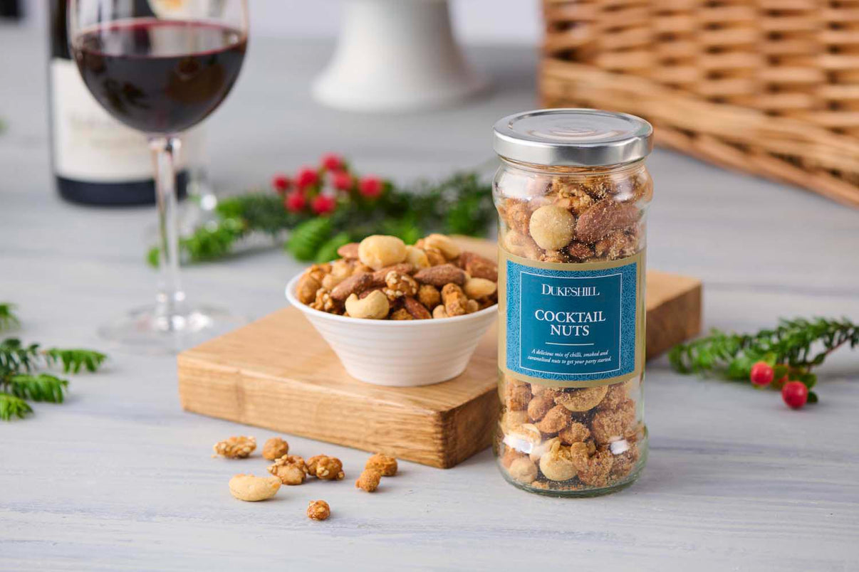 Two whole wicker baskets are needed to contain the wealth of sweet, savoury and alcoholic treats that DukesHill have curated for their stunning 'Jewel in the Crown' Christmas hamper. A joyous selection of treats awaits, including: