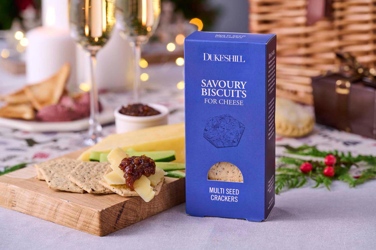 Treat your loved ones (or yourself!) this Christmas with a delightful selection of sweet and savoury wonders from DukesHill. Presented in a beautiful wicker basket, you'll receive:
