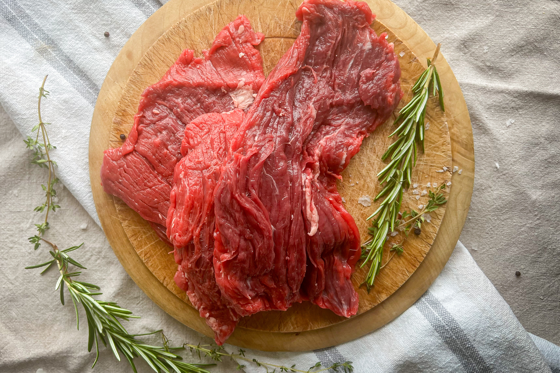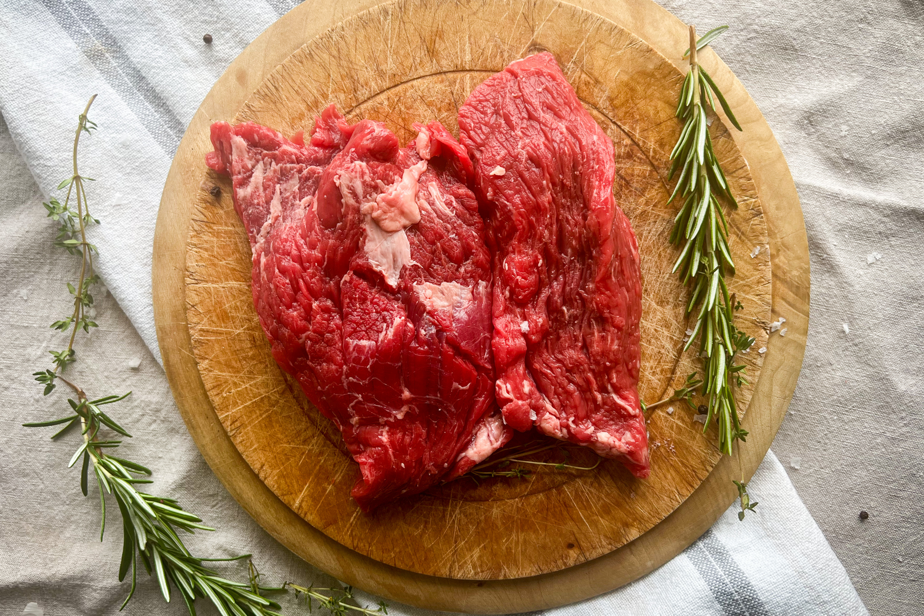 A stunningly tender Bavette steak from The Shropshire Pantry, produced from retired British dairy cows to deliver a deep and mature flavour and support sustainable farming. Taken from the beef skirt, it offers the soft tenderness of fillet at a third of the price.