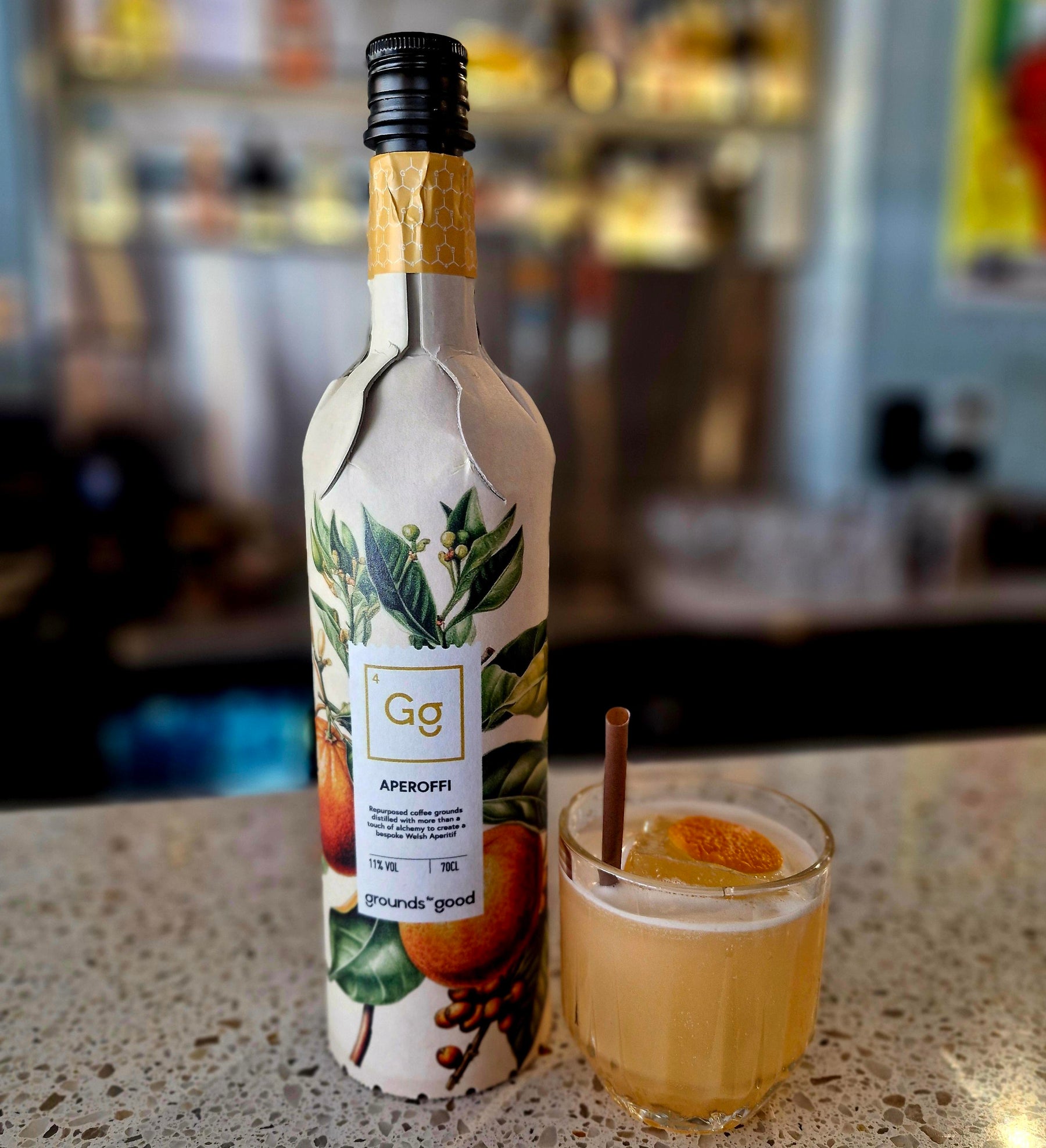 An award-winning and incredibly eco-friendly tipple from Wales' Grounds For Good - their Aperoffi (a Welsh APERitif blended with upcycled cOFFI - the Welsh for coffee!) is a deliciously refreshing blend of sweet and bitter orange, rhubarb, gentian and rosemary.