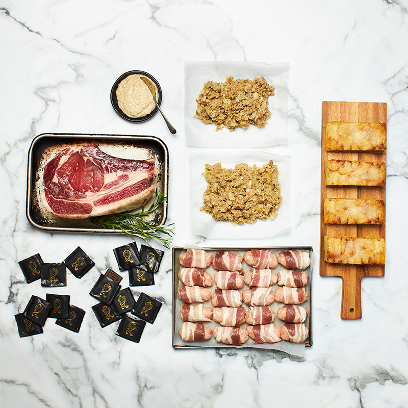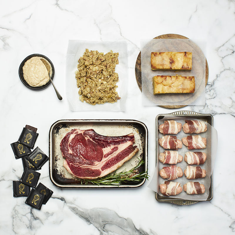 The perfect complete Christmas dinner party hamper from Wales' award-winning Douglas Willis butcher, featuring a show-stopping Welsh rib of beef with all the trimmings to delight your friends and family.